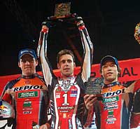 シーズン前には、ランキング2位という今の結末はまったく考えてもいなかったことだったので、今年のインドアはいいシーズンになったと思います。ライダー仲間にも「今まではインドアの藤波はメンバーになりきれていなかったけど、今年は“インドアの藤波”にかわったね」と評価してもらえるほどになりました。でもふだんの練習はアウトドアばかりで、特にインドアの練習をしているわけではありません。でも、トレーニングメニューなども充実していて、インドアの試合で続けてセクションを走っても、腕が上がるなんてことはなくなっています。テクニックだけではなく、いろんな点で今年の成績があるし、それが自信になっています。チャンピオンをとれなかったのが残念、と言いたいところですが、今年は予選落ちを2度に抑えたこと、なにはともあれ1勝できたこと、第1戦からランキング3位をキープして、予選でいいスタート順を得られたことなどが大きな収穫でした。アウトドアシーズンを前に、いい感じでインドアシーズンを終えられたのは、とにかく大きな成果でした。明日からは、気持ちを切り替えて、アウトドアシーズンに突入します。